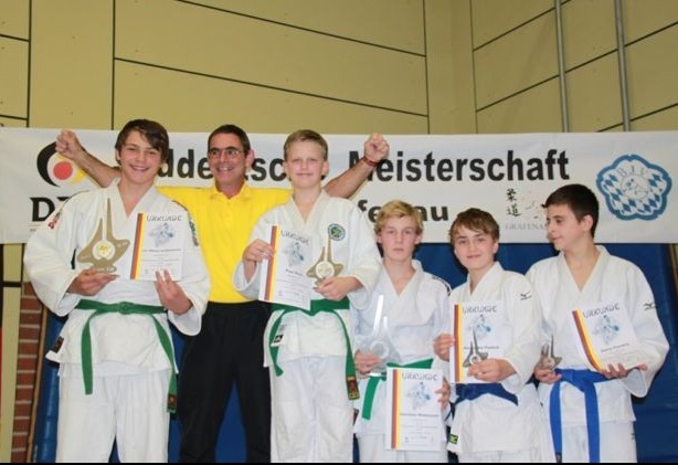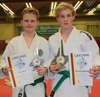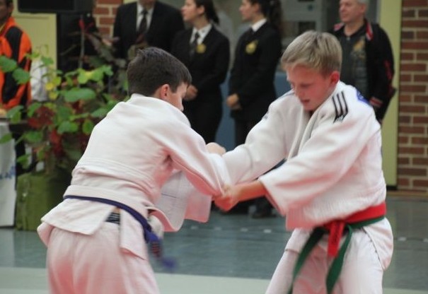 Still ist es in der Grafenauer Sporthalle geworden. Zwei dreizehnjährige stehen sich am späten Nachmittag konzentriert im Finale gegenüber und warten vor den gespannten Zuschauern auf das „Hajime“, im Judo das Zeichen für den Kampfbeginn. Momente später. Dorian Weiß Mare (JSC Heidelberg) wirft seinen Gegner in hohem Bogen durch die Luft und sichert sich zum zweiten Mal den Süddeutschen Meistertitel (-43 Kg) bei den unter vierzehnjährigen.